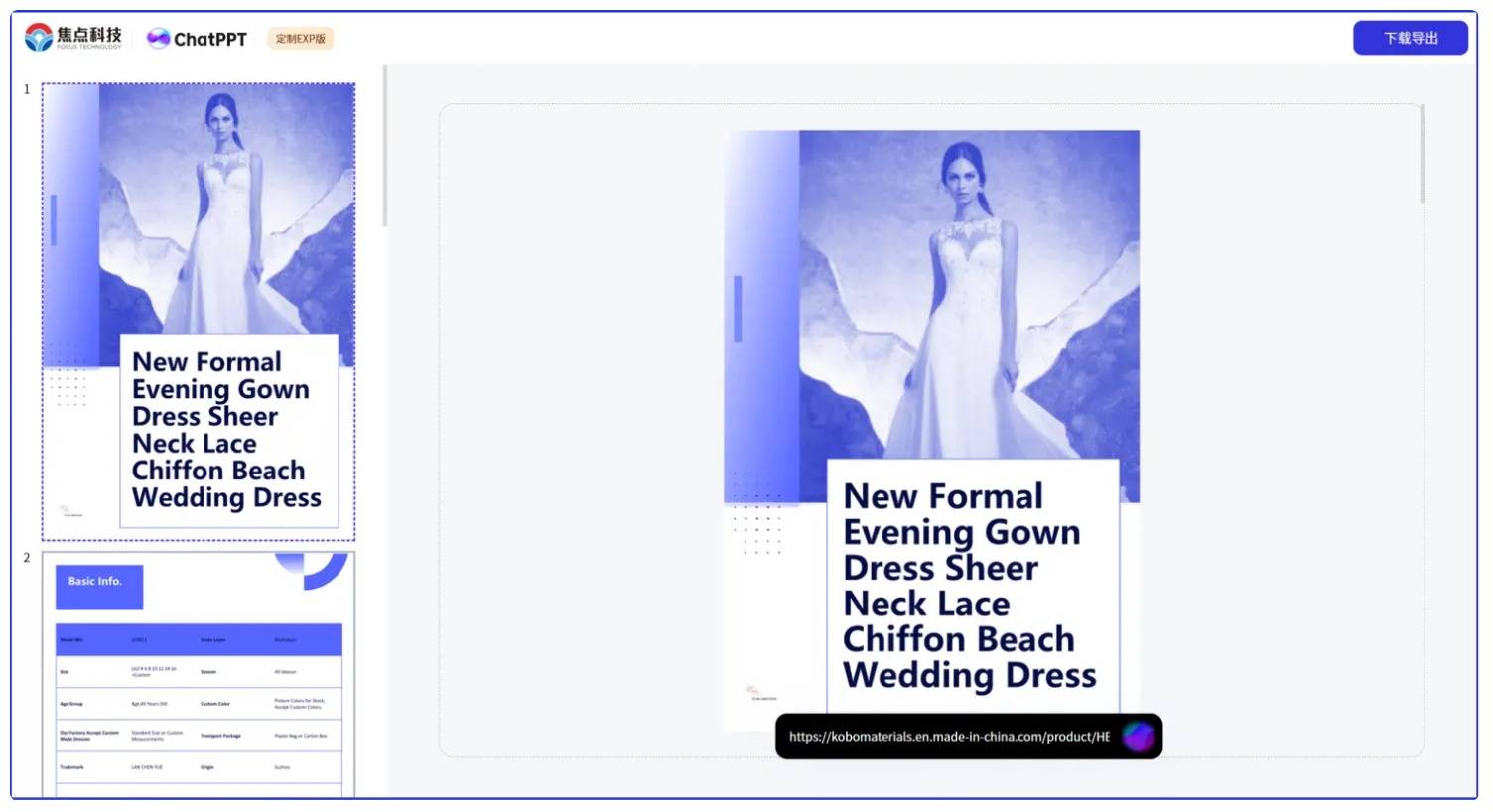 前端呈现:将 API 返回的结构化数据渲染为可视化 PPT,支持预览、下载;