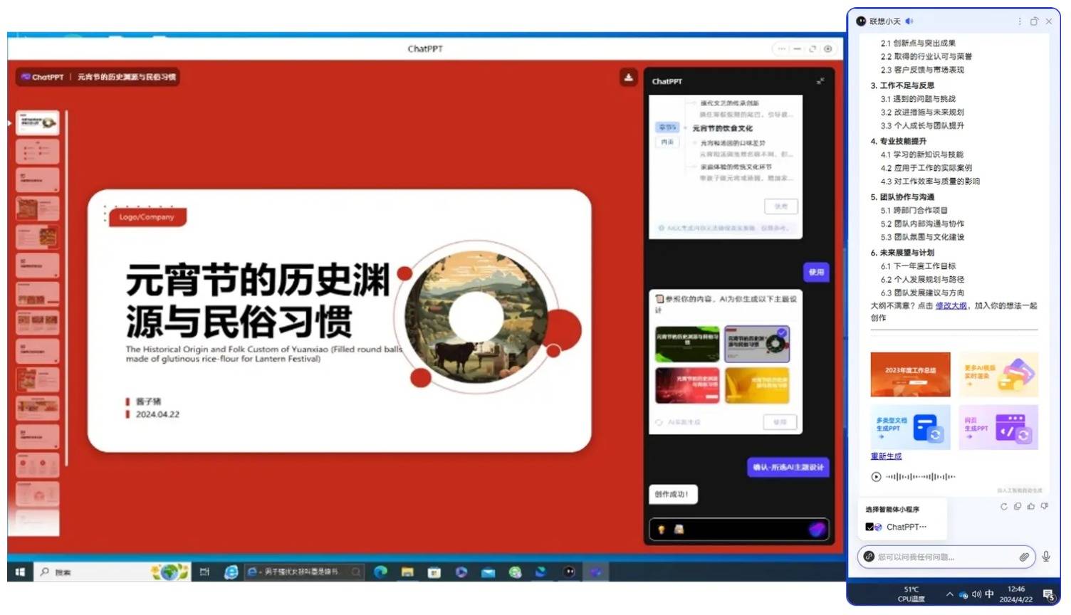 借助联想 AIPC 的终端覆盖,ChatPPT 突破 “仅依赖移动端或网页端” 的局限,实现 “系统级、全场景” 的服务触达。同时,基于 AIPC 的硬件数据(如用户使用习惯、设备性能),ChatPPT 可持续优化模型适配性,提升不同算力环境下的服务稳定性,强化技术壁垒。