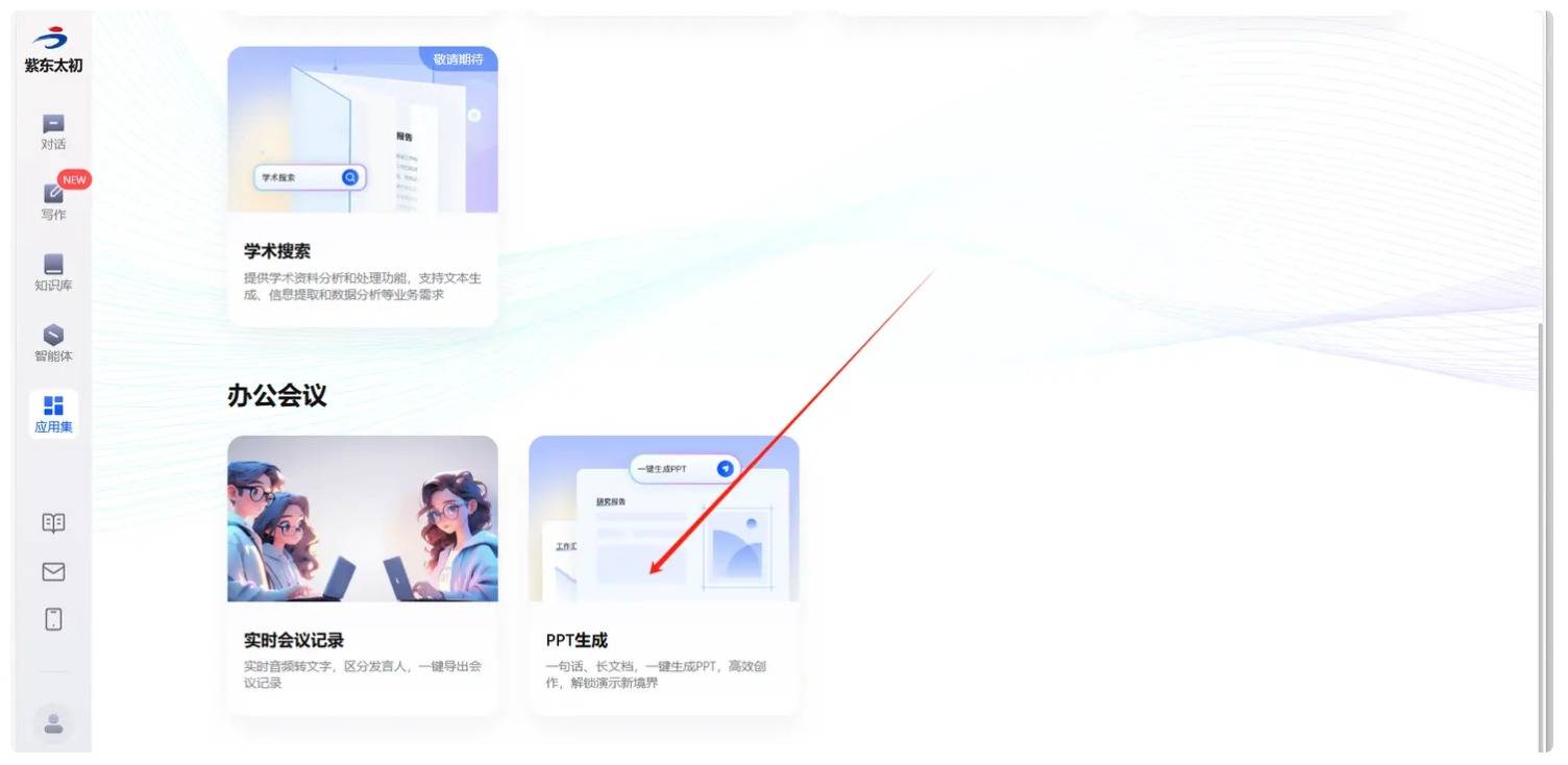 以与紫东太初大模型的合作为例,其应用路径直观体现了合作方案的便捷性:用户仅需按 “官网 - 对话体验 - 应用集 - PPT 生成” 的简单流程完成初稿制作,生成后还可直接进入编辑器进行二次优化,无需额外跳转,进一步印证了深度合作下的体验落地优势。
