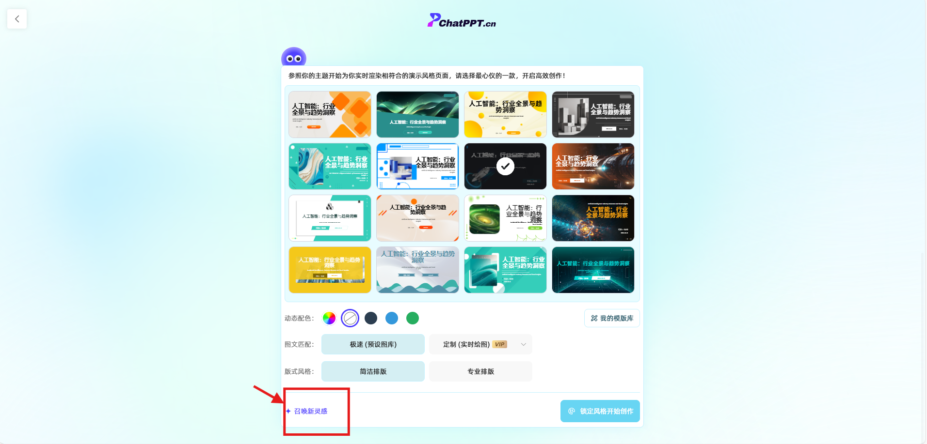 如果对当前生成的主题结果不满意,还可以点击“召唤新灵感”重新生成
