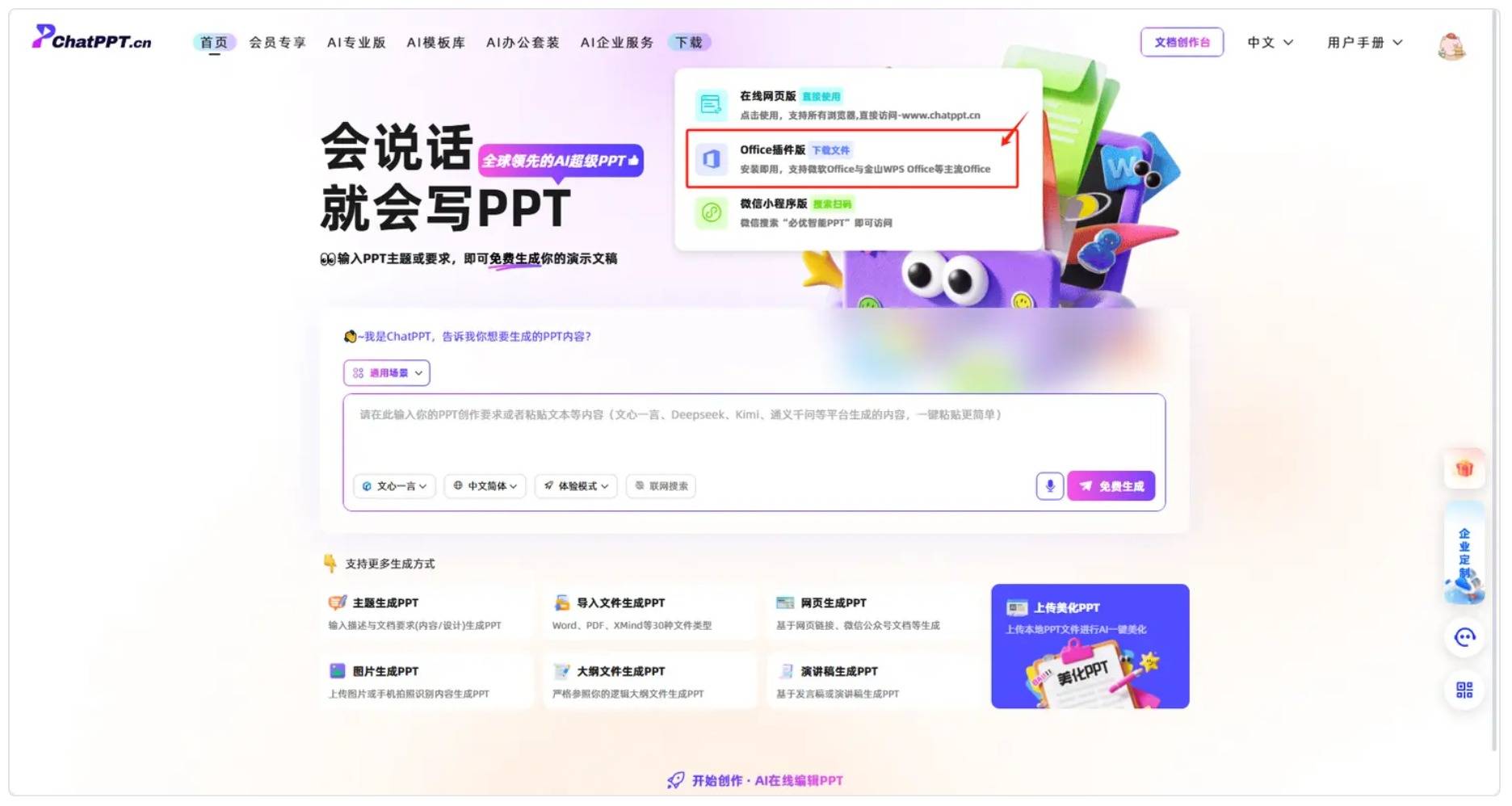 3.启动Office(微软与💡WPS均可),并启动体验“ChatPPT”