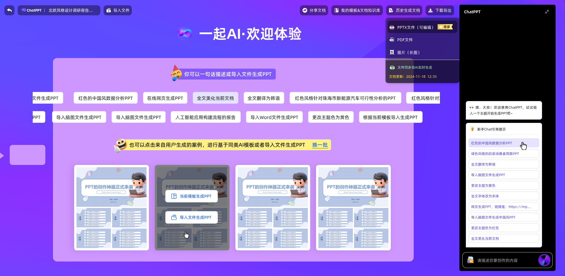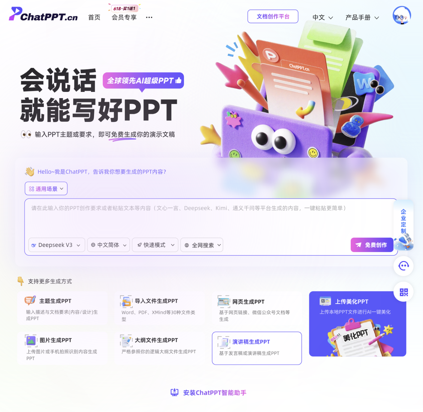 发布基于公文、政策文件、领导发言稿等特色生成PPT服务