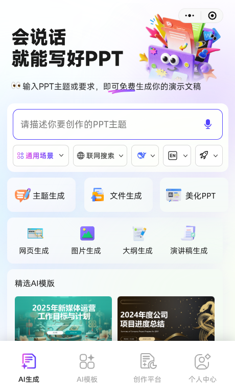 新增AI生成页面:导入文件生成页面、主题生成页面